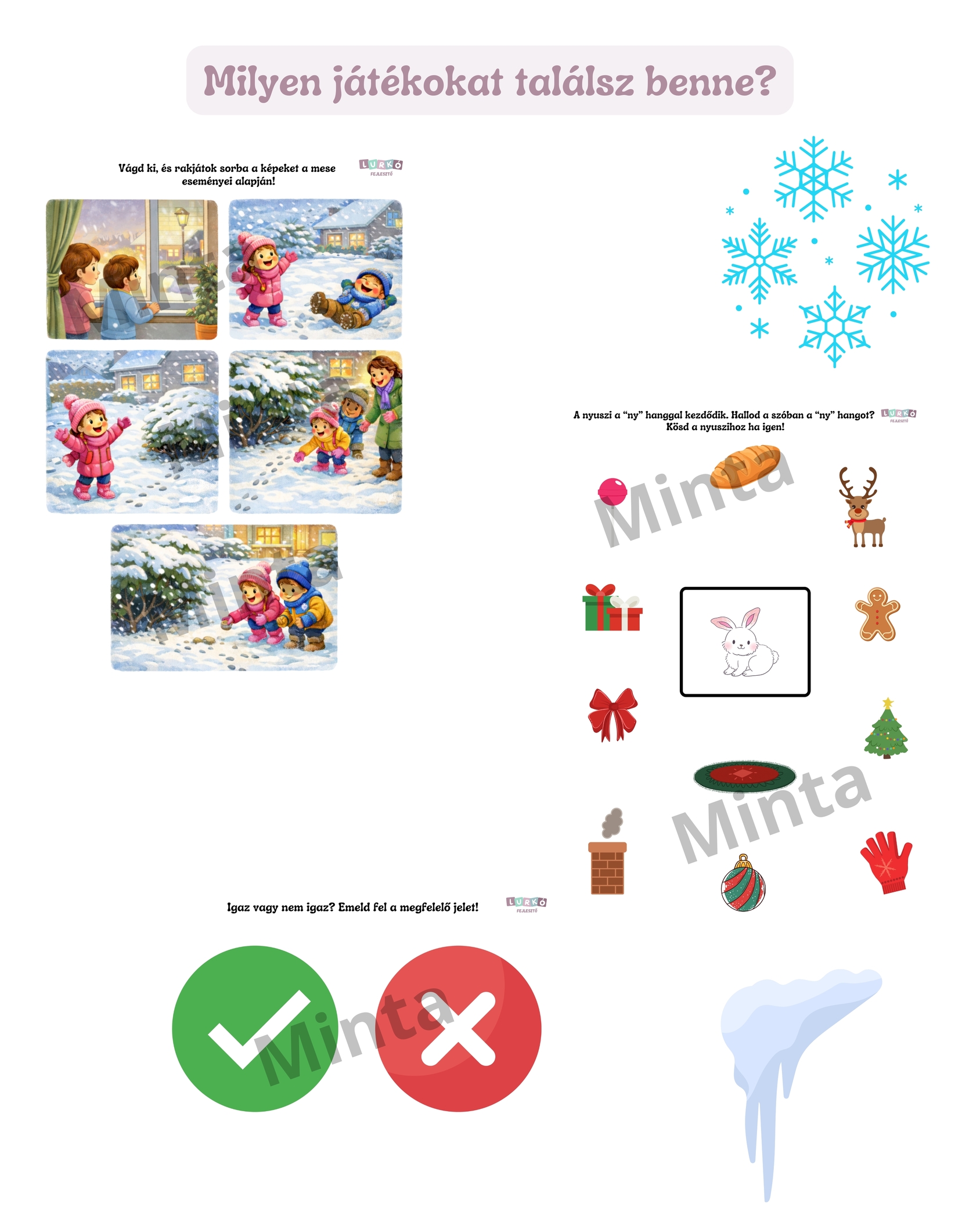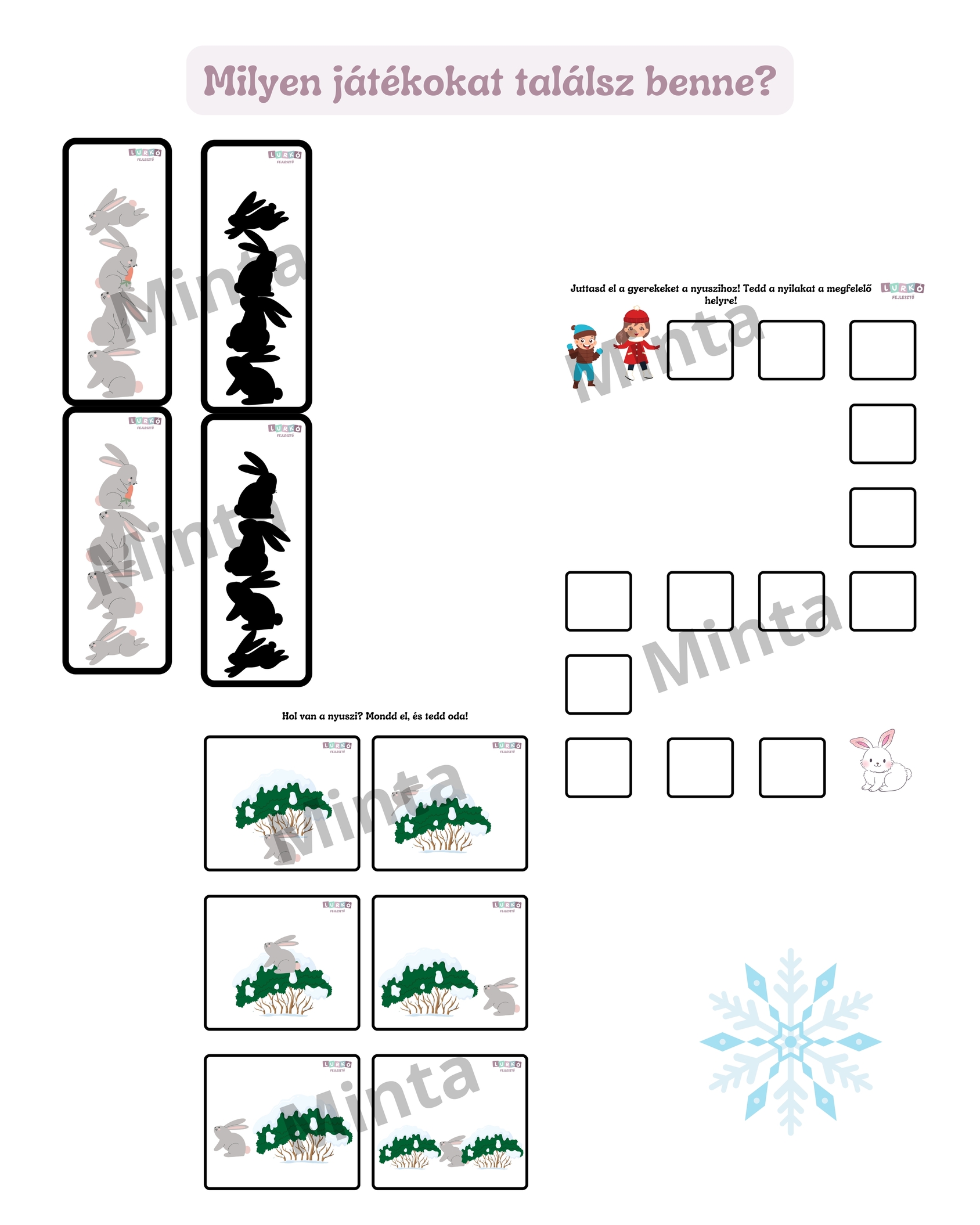 Az „Az első hó” című meséhez készült játékcsomag egy komplex, mégis játékos fejlesztő anyag, amely óvodás korú gyermekek számára készült.