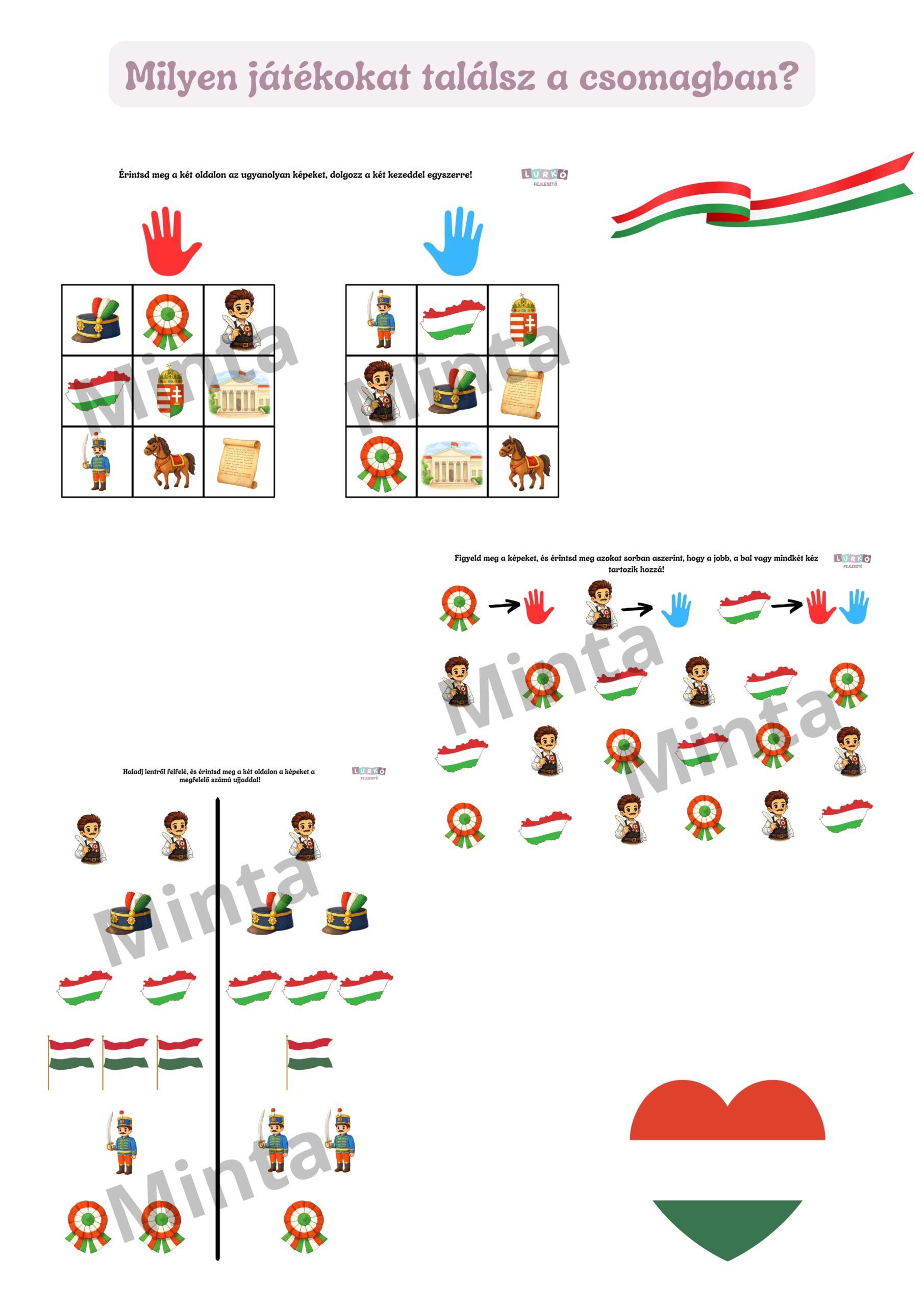 A Március 15. agytorna egy játékos, mégis komplex fejlesztő feladatlapcsomag, amely segíti a gyerekeket a koncentráció, a két agyfélteke összehangolt működése és a finommotorika fejlesztésében, mindezt a magyar történelem egyik legfontosabb ünnepéhez kapcsolódva.