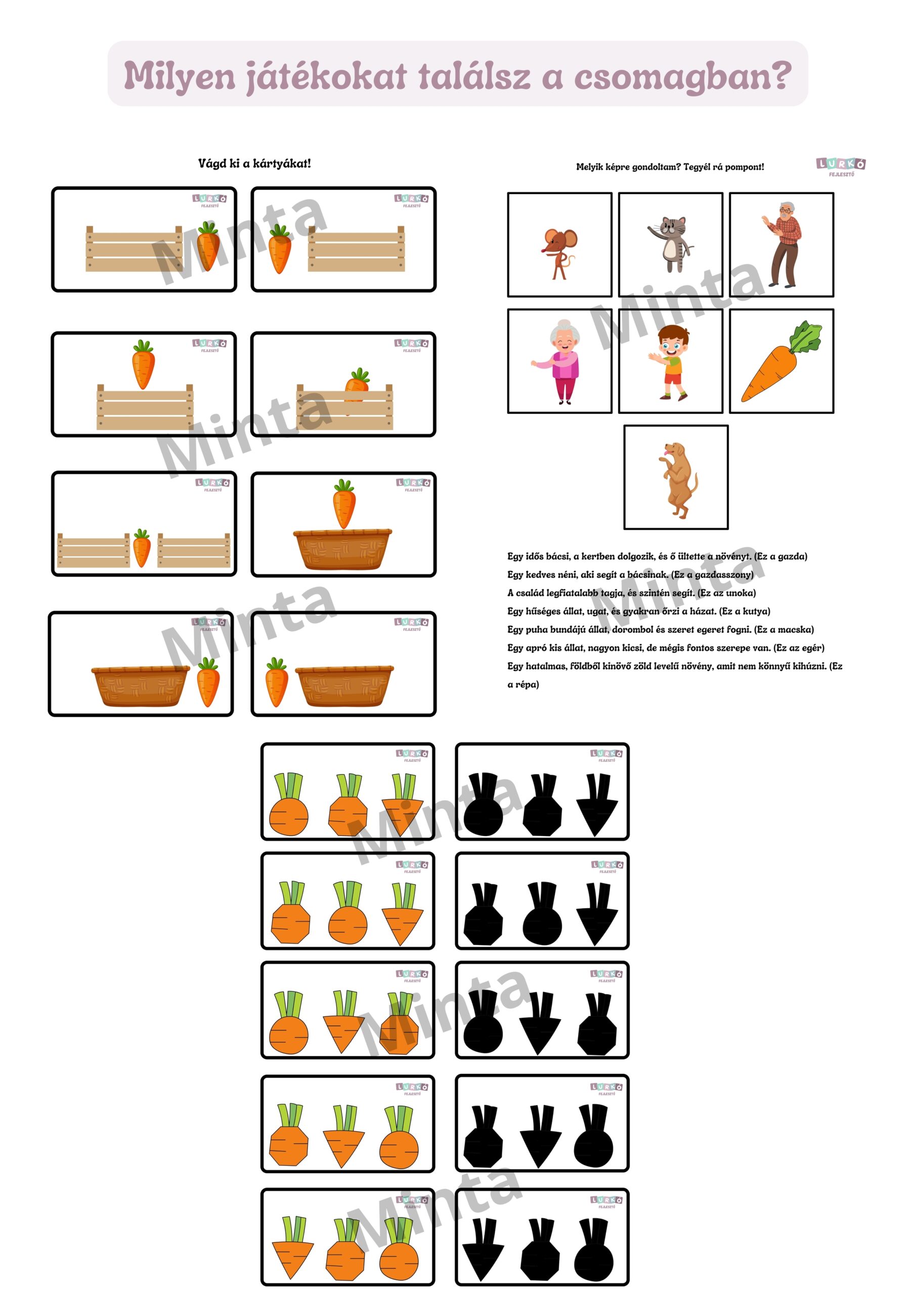 Ez a csomag nem egyszerű feladatlap, hanem egy komplex, mesealapú fejlesztő élmény, ahol a gyerekek aktívan részt vesznek a történetben, miközben észrevétlenül tanulnak.