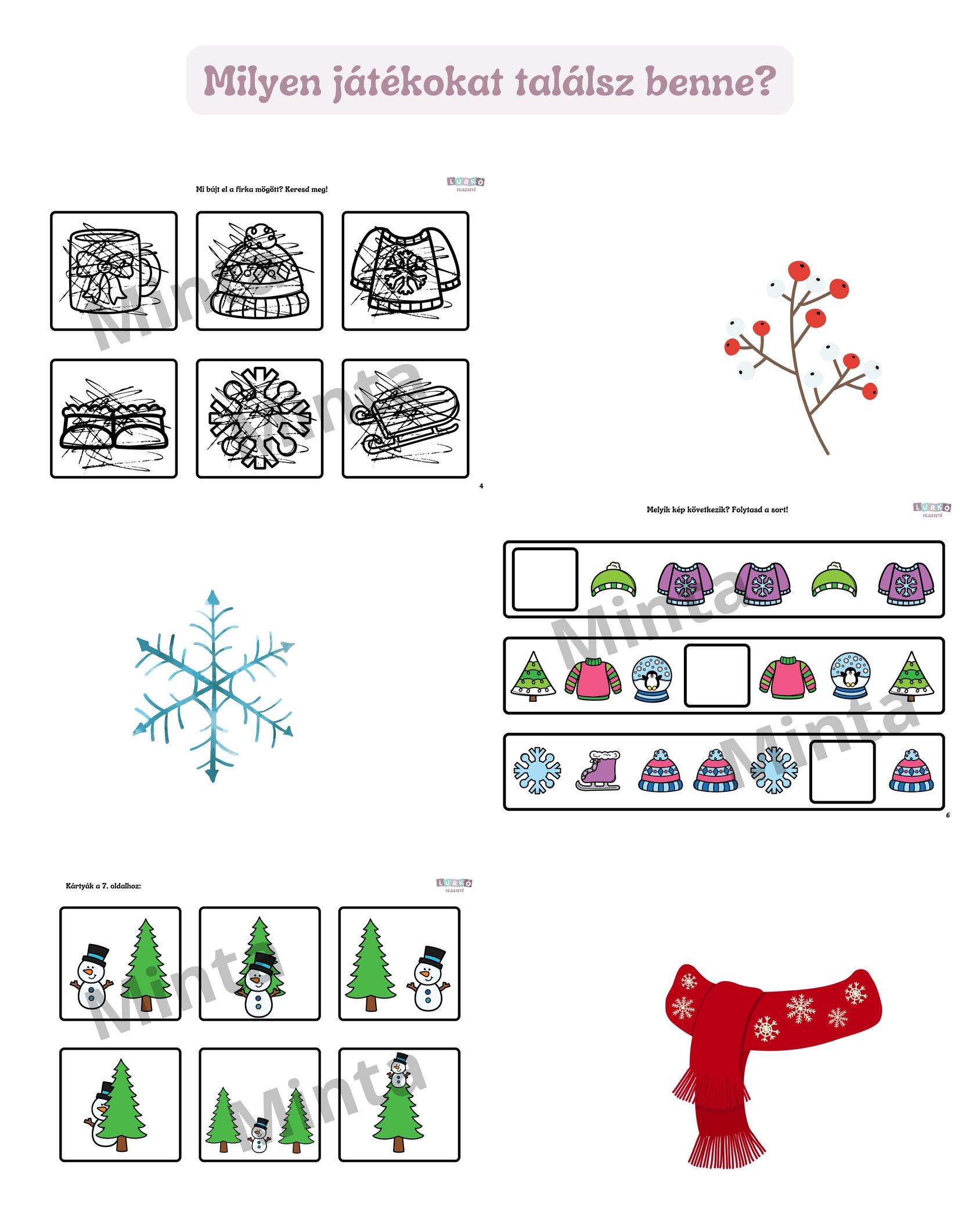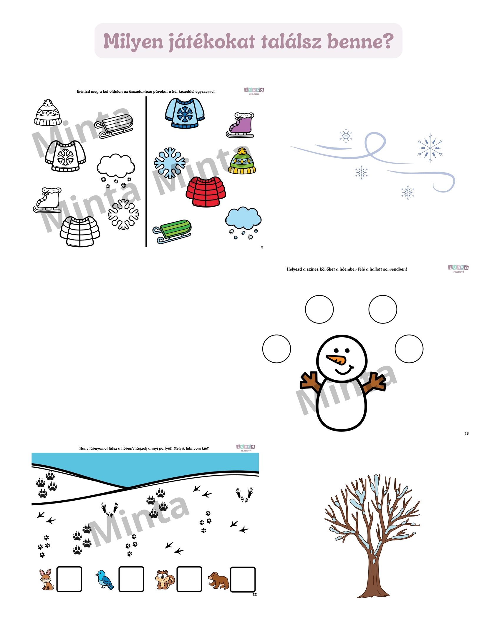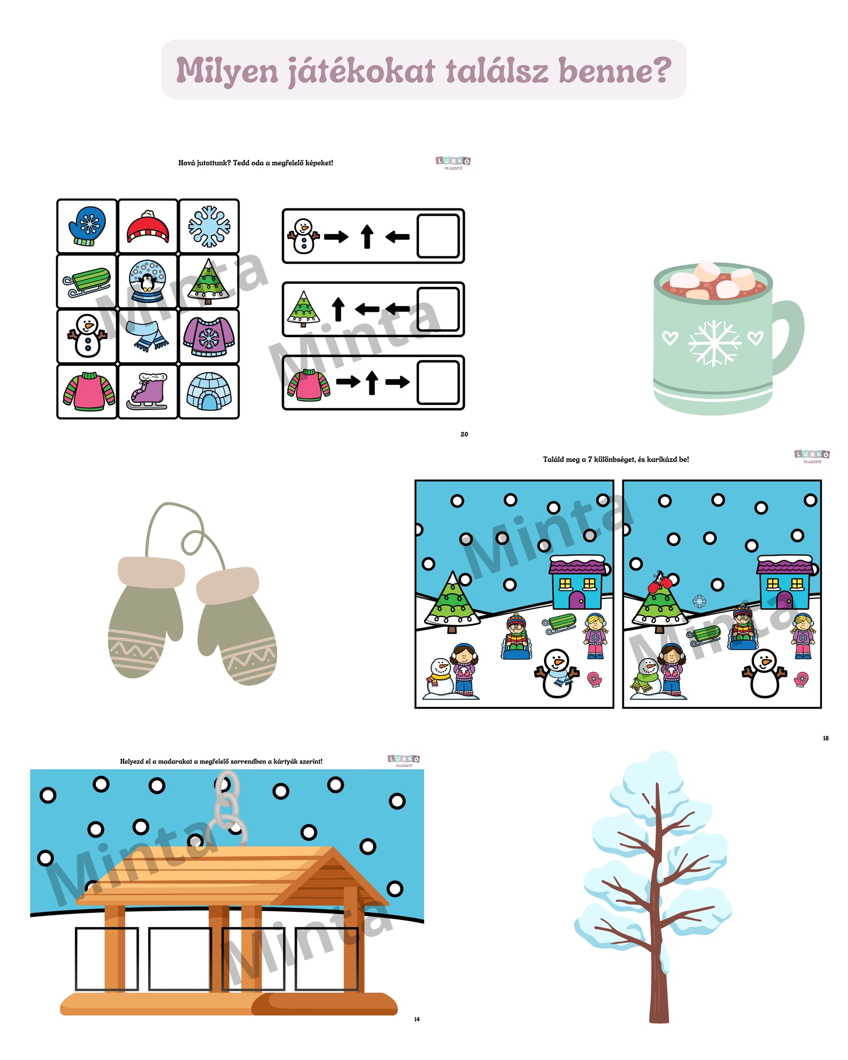A könyv 23 változatos, tépőzáras játékot tartalmaz, amelyek játékos formában támogatják az iskolaérettséghez szükséges készségek fejlődését.